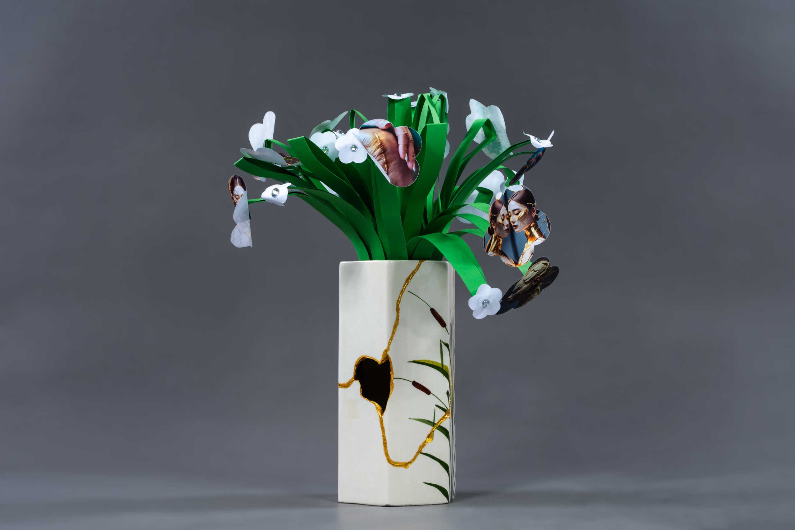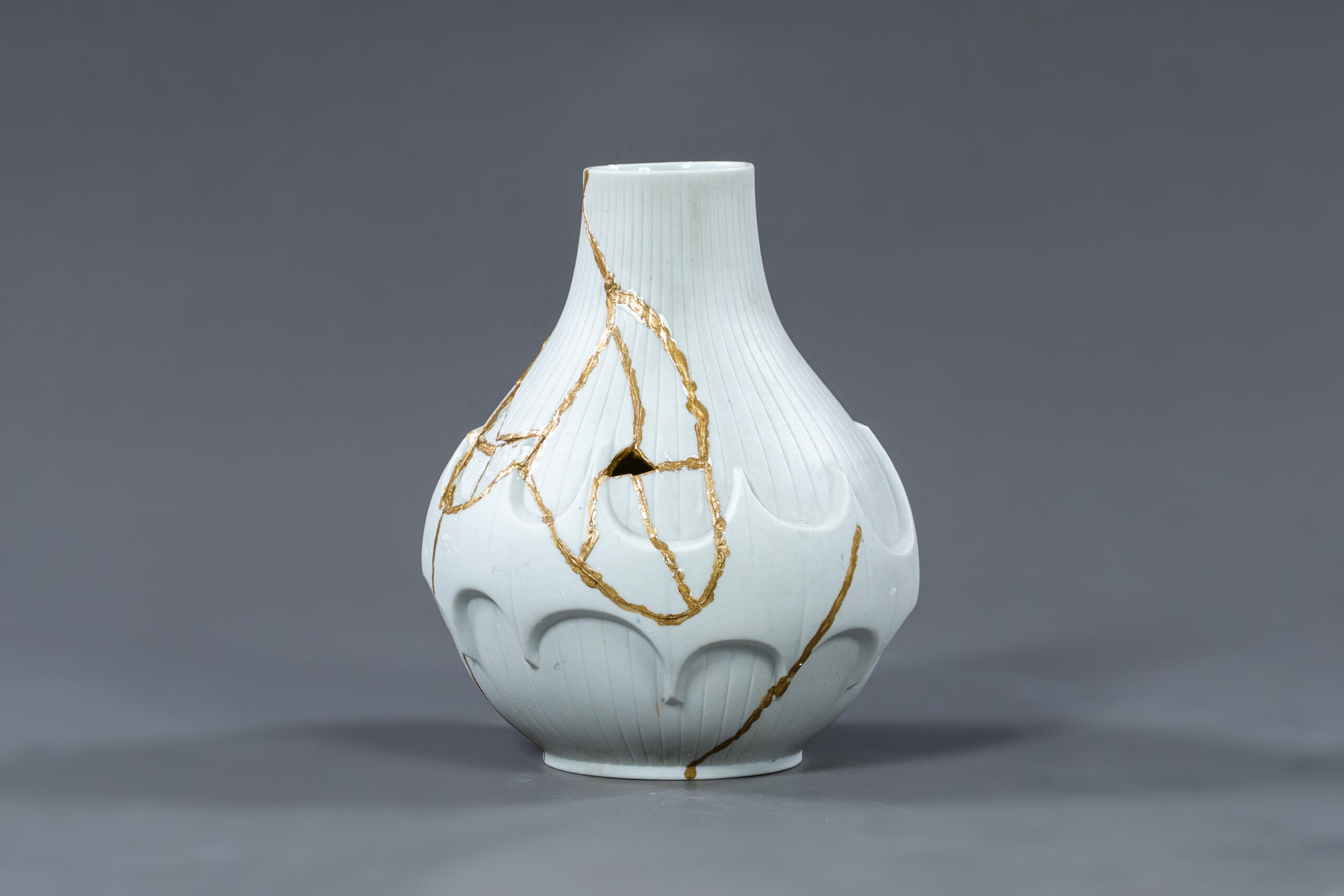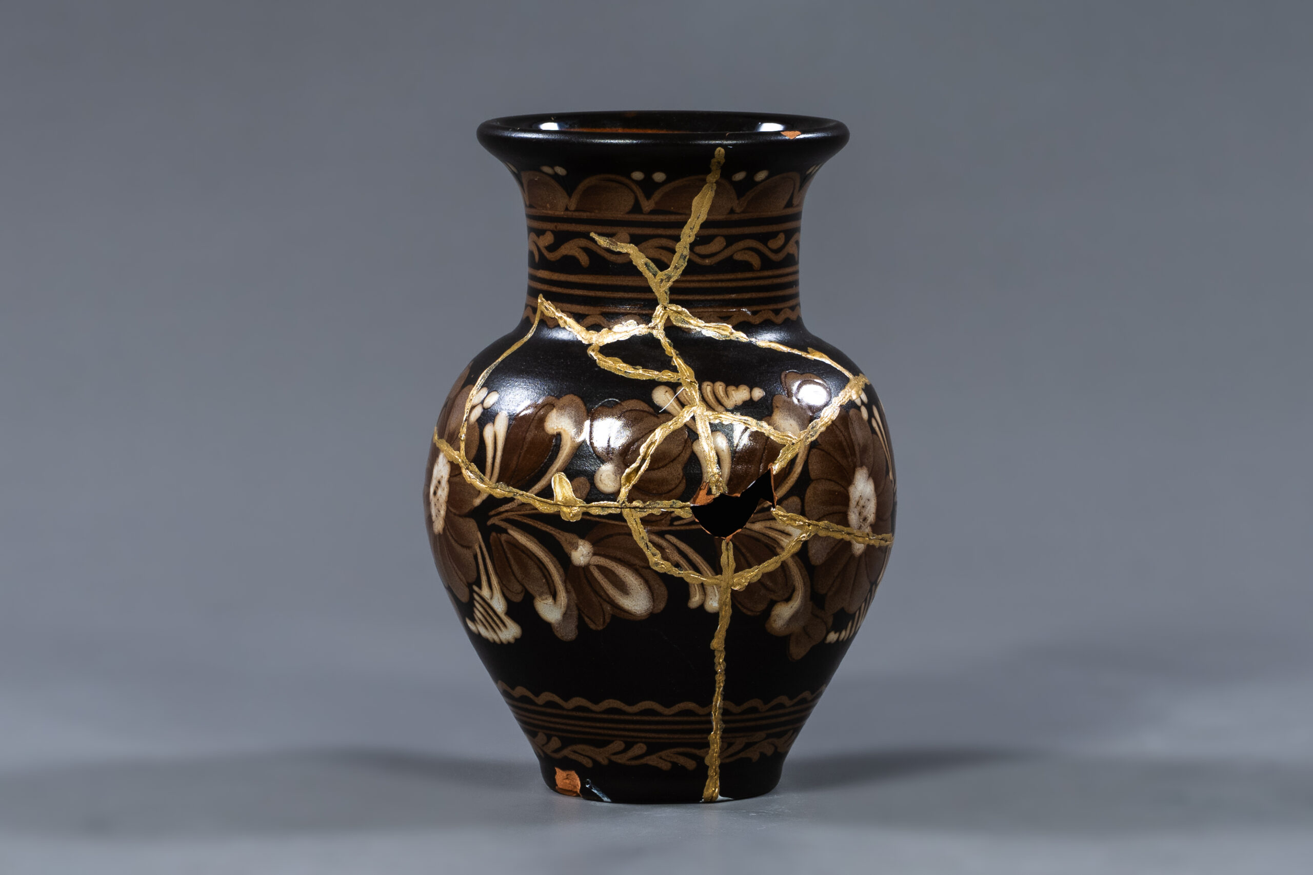 Wie gelingt es, das Einfache, Vergängliche und Unperfekte in einer Welt zu schätzen, die von der Perfektion, Schnelllebigkeit und Unfehlbarkeit geprägt ist? Die Antwort darauf können die Studierenden in ihren Werken im Modul „Interkulturelle Kommunikation in der Kunst“ zum Ausdruck bringen. Kombiniert mit der Technik „Kintsugi“ oder „monono aware“ werden in den Werken bewusst Unregelmäßigkeit und Unebenheiten des Materials genutzt. Die Stellen, wo die Keramik zerbrach, werden mit Gold repariert. Der Bruch wird hervorgehoben, anstatt versteckt zu werden. Ob sichtbar oder unsichtbar – die Risse und Brüche sind Teil der Geschichte des Gegenstands oder eines Lebens.